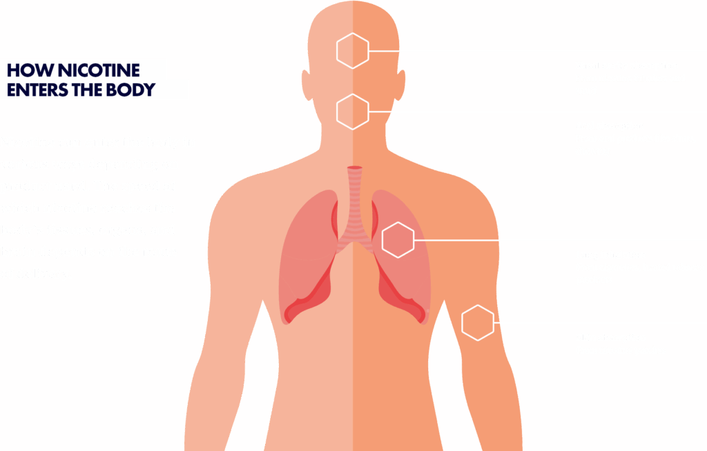 Nicotine can enter the body in various ways, depending on the product used. In turn, the route of delivery impacts the speed at which nicotine reaches the body’s tissues, organs and brain.
