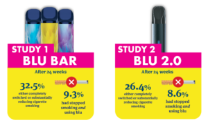 These responses coincided with an increasing motivation to transition to blu or stop smoking as the studies progressed.