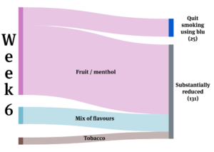 The diagram above also shows that non-fruit flavours like tobacco – or a mix of different flavours – also had an important role to play in some participants substantially reducing their smoking.