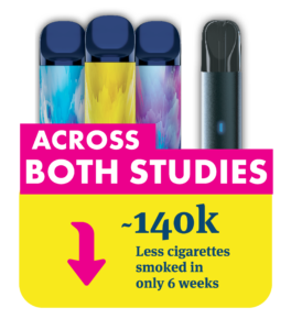 Vaping had a near-instant impact on participants’ smoking behaviour; the majority of smoking reduction occurred during the first week of each study.
