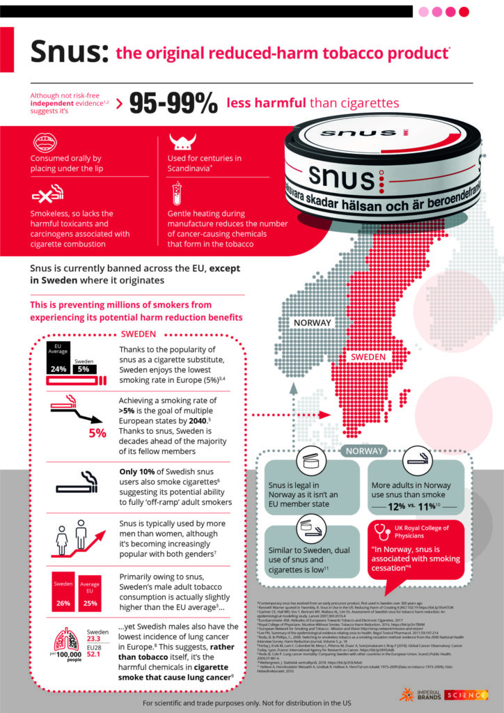 By Alan Hardacre, Head of Group Corporate Affairs Many people – adult smokers and non-smokers alike – may well ask: ‘what is snus?’ Even though the oral tobacco product has been around for several centuries, it’s largely unknown, and misunderstood, outside of its native Scandinavia. The EU’s current ban on snus – with only Sweden […]