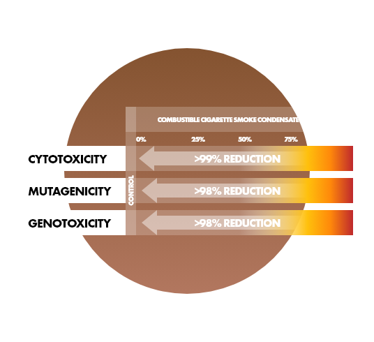 Laboratory tests demonstrate the aerosol produced from PULZE and its iD tobacco consumable is between 87-99% less cytotoxic, mutagenic and genotoxic compared to cigarette smoke.