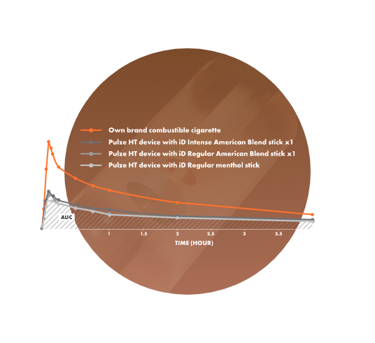 The PULZE and iD system delivers nicotine efficiently to the blood of adult smokers, while not exceeding that of a cigarette, as the graph demonstrates.