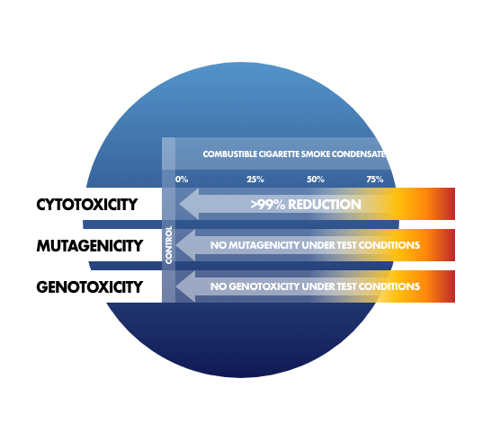 Laboratory tests suggest blu e-liquids and aerosols are substantially less cytotoxic, mutagenic and genotoxic compared to cigarette smoke.
