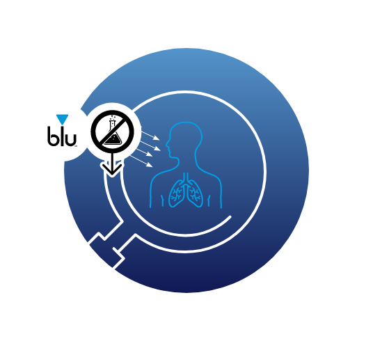 Research shows that blu aerosols contain up to 99% lower levels of select toxicants of public health interest compared to cigarette smoke.